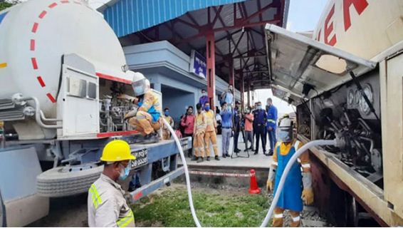 ‘অক্সিজেন এক্সপ্রেস’র ১০টি কনটেইনারে আসা তরল মেডিকেল অক্সিজেন এই স্টেশন থেকে সড়কপথে ঢাকায় নেওয়া হবে।
