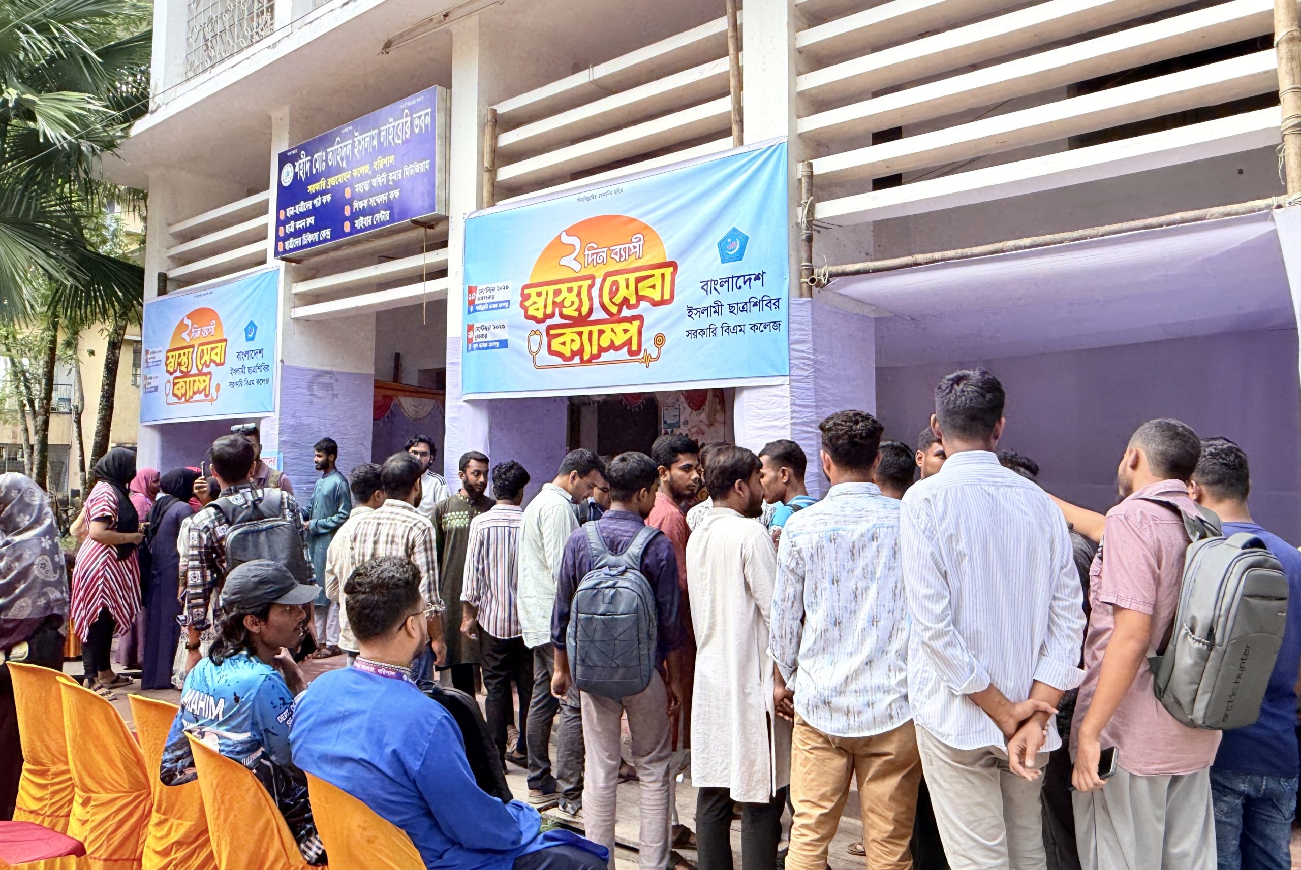 খবর বিজ্ঞপ্তি ঃঃ বরিশাল সরকারি বিএম কলেজে বাংলাদেশ ইসলামি ছাত্রশিবির ২ দিনব্যাপী ফ্রী মেডিকেল ক্যাম্প আয়োজন করেছে। প্রায় ৩০ হাজার শিক্ষার্থীদের দক্ষিনাঞ্চলের বৃহৎ এ প্রতিষ্ঠানে শিবিরের এ মহান উদ্যোগকে কলেজের শিক্ষক শিক্ষার্থী বিভিন্ন স্তরের কর্মকর্তা কর্মচারী সবাই স্বাগত জানায় এবং স্বতস্ফূর্তভাবে চিকিৎসা গ্রহণ করে। বরিশালের ঐতিহ্যবাহী শেরেবাংলা মেডিকেল কলেজের ৬ জন ডাক্তার ছেলে ও মেয়েদের আলাদা ক্যাম্পে ২ টি টিম দ্বারা চিকিৎসা সেবা পরিচালনা করেন । আজ ২৩ সেপ্টেম্বর কলেজের লাইব্রেরি ভবনে এবং আগামীকাল ২৪ সেপ্টেম্বর কলেজের মূল ভবনে শিবিরের এই বিনামূল্যে চিকিৎসা কার্যক্রম চলবে। চিকিৎসার পাশাপাশি বিভিন্ন ধরনের ঔষধ প্রদান করা হয়।
