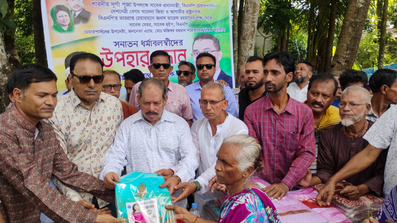 স্টাফ রিপোর্টার ঃঃ শারদীয় দুর্গাপূজা উপলক্ষে বরিশালে সনাতন ধর্মাবলম্বীদের মাঝে উপহারস্বরূপ শাড়ি বিতরণ করা হয়েছে।গতকাল রোববার (২৮সেপ্টেম্বর)দুপুর ১২ টা দিকে নগরীর মথুরনাথ পাবলিক স্কুল মাঠে এ উপহার বিতরণ করা হয়।বিএনপির চেয়ারপারসন বেগম খালেদা জিয়ার উপদেষ্টা এ্যাড.মজিবর রহমান সরোয়ারের নিজস্ব অর্থায়নে এ উপহার বিতরণ করা হয়।এসময় এক হাজার পিচ শাড়ি হিন্দু ধর্মাবলম্বীর মাঝে বিতরন করেন।অনুষ্ঠানে বিএনপি’র নেতাকর্মী ছাড়াও উপস্থিত ছিলেন,বরিশাল জেলা পূজা উদযাপন পরিষদের সভাপতি মুখার্জি কুডু,বরিশাল মহানগর হিন্দু বৈদ্য খ্রিস্টান ঐক্য পরিষদের সভাপতি এ্যালবার্ট রিপন বল্লভ,সাধারণ সম্পাদক নিমন কানু শাহা এবং পূজা উদযাপন পরিষদের নেতৃবৃন্দ।এ সময় অনুষ্ঠানে বক্তব্যে মজিবর রহমান সরোয়ার বলেন,“বিএনপি সব সময় সাম্প্রদায়িক সম্প্রীতি বজায় রাখে।একটি গ্রুপ সাম্প্রদায়িক সম্প্রীতি বিনষ্ট করার চেষ্টা চালাচ্ছে তাদের এই চেষ্টাকে আমরা রুখে দেবো।এ ছাড়াও তিনি আরও বলেন,“আগামী নির্বাচনের মাধ্যমে দেশনেত্রী বেগম খালেদা জিয়া ও রাষ্ট্রনায়ক তারেক রহমানের নেতৃত্বে দেশে গণতন্ত্র ও জনগণের অধিকার পুনঃপ্রতিষ্ঠিত করা হবে।