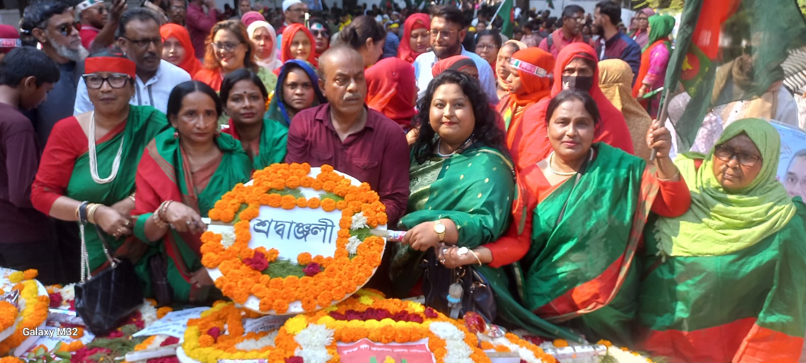 এ সময় পুস্পস্তবক অর্পণ করেন অ্যাডভোকেট মজিবুর রহমান সরোয়ার ও শরফুদ্দিন সান্ট। তাদের সঙ্গে উপস্থিত ছিলেন বরিশাল জেলা ও মহানগরের বিভিন্ন পর্যায়ের নেত্রীবৃন্দ।