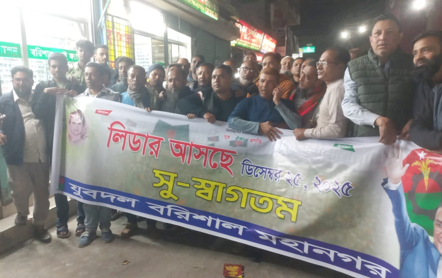তারেক রহমানের দেশে আগমন উপলক্ষে বরিশাল মহানগর যুবদলের আনন্দ মিছিল