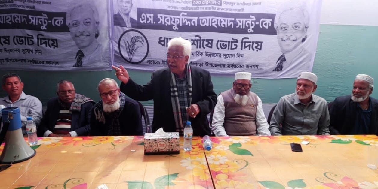মোঃ আলীনুর ইসলাম নয়নঃ,উজিরপুর ঃঃ বরিশাল জেলার উজিরপুরে বীর মুক্তিযোদ্ধাদের সাথে বিএনপির প্রার্থী এস সরফুদ্দিন আহমেদ সান্টুর মতবিনিময় সভা অনুষ্ঠিত হয়েছে। ৩ ফেব্রুয়ারি দুপুর ১২ টায় উজিরপুর বিএনপির নির্বাচনী অফিসের সভাকক্ষে উজিরপুর উপজেলা মুক্তিযোদ্ধা কমান্ডের আহবায়ক বীর মুক্তিযোদ্ধা আঃ মোতালেব হাওলাদার এর সভাপতিত্বে ও উপজেলা ও পৌর বিএনপির মুক্তিযোদ্ধা বিষয়ক সম্পাদক মোঃ আলমগীর হোসেন এর সঞ্চালনায় বক্তৃতা করেন উজিরপুর উপজেলা বিএনপির সাধারণ সম্পাদক মোঃ হুমায়ুন খান,সিনিয়র যুগ্ম সাধারণ সম্পাদক সরদার সিদ্দিকুর রহমান,পৌর বিএনপির সাধারণ সম্পাদক মোঃ রোকনুজ্জামান টুলু,বীর মুক্তিযোদ্ধা ও সাবেক উপজেলা বিএনপির সভাপতি আঃ মাজেদ তালুকদার মান্নান মাষ্টার,বীর মুক্তিযোদ্ধা আয়নাল হক হাওলাদার,বীর মুক্তিযোদ্ধা ও অবসর প্রাপ্ত শিক্ষক এম এ জাকারিয়া, বীর মুক্তিযোদ্ধা মোঃ মজিবুর রহমান। উপস্থিত ছিলেন উজিরপুর প্রেসক্লাবের সভাপতি মোঃ এমদাদুল কাশেম সেন্টু,সাধারণ সম্পাদক মোঃ নাসির উদ্দিন শরীফ,দপ্তর সম্পাদক মোঃ নুরুল ইসলাম আসাদ,সদস্য আহাদ সুমন, সাংবাদিক মোঃ খলিলুর রহমান,সুমন বালী,মেহেদী হাসান। উপস্থিত ছিলেন উজিরপুর উপজেলার সকল মুক্তিযোদ্ধাগন। এসময় প্রধান অতিথি বরিশাল-২ (উজিরপুর-বানারীপাড়া) আসনের বিএনপির মনোনীত ধানের শীষ প্রতীকের সংসদ সদস্য প্রার্থী এস সরফুদ্দিন আহমেদ সান্টু বিএনপির চেয়ারপার্সন তারেক রহমান এর হাতকে আরো শক্তিশালী করার লক্ষ্যে ধানের শীষ প্রতীকে ভোট চেয়ে দোয়া প্রার্থনা করেছেন।