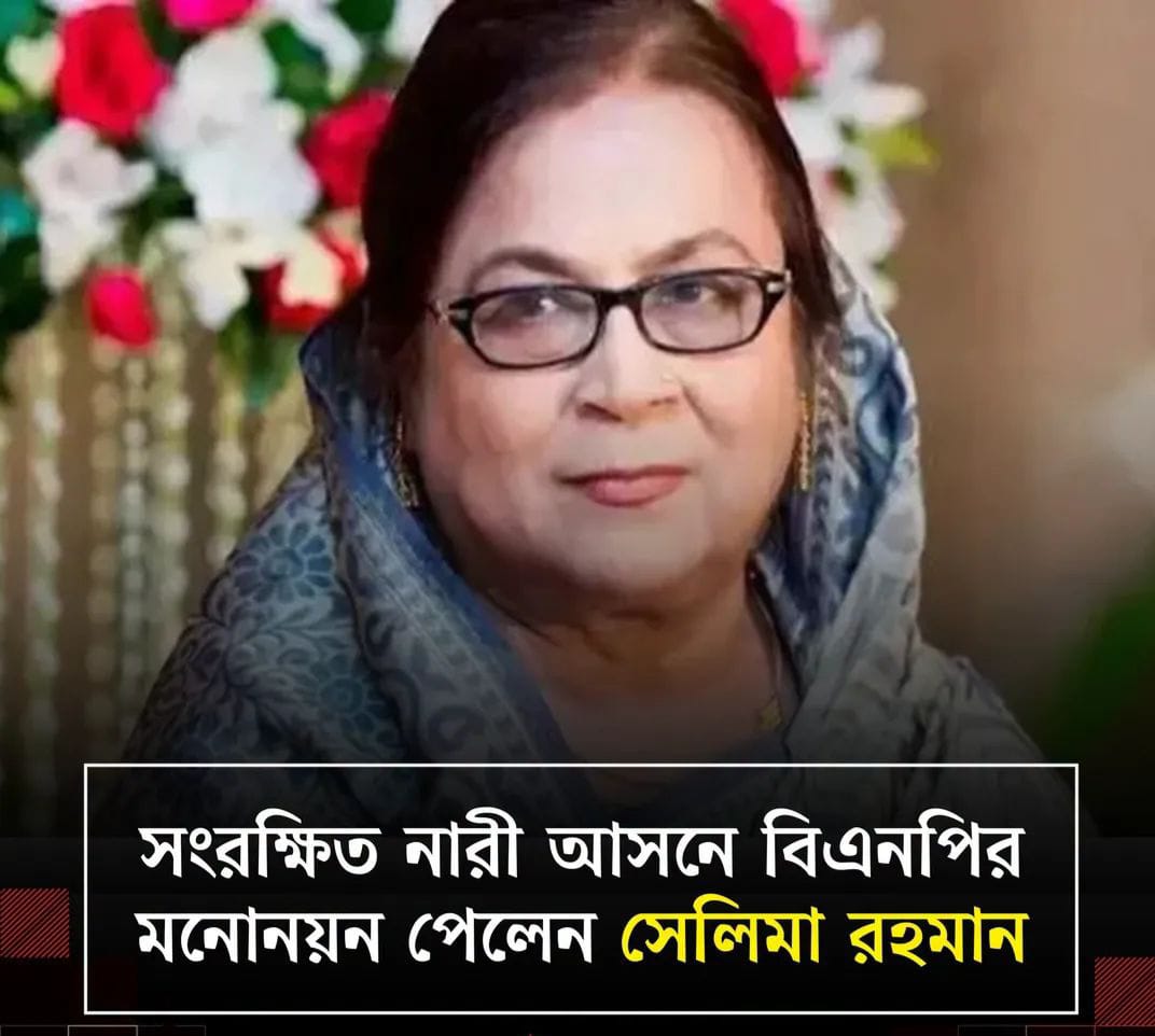 বেগম সেলিমা রহমানকে সংরক্ষিত নারী আসনের বিএনপি’র চূড়ান্ত মনোনয়ন পাওয়ায় ব্যারিস্টার মনিরুজ্জামান আসাদের শুভেচ্ছা ও অভিনন্দন।